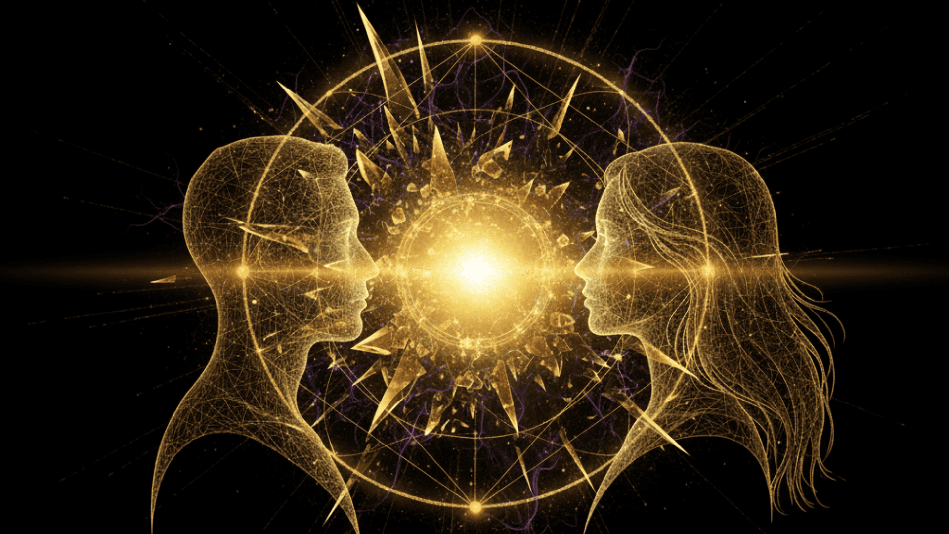 Diese Begegnung ist kein romantisches Ziel, sondern eine physische Erschütterung. Der massive Push-Pull zwischen den Personen ist kein Beziehungsdrama, sondern ein energetischer Mechanismus, der deine gesamte Systemstabilität angreift. Während dein Verstand versucht, ein verzweifeltes Narrativ um das Gegenüber zu spinnen, dient der Prozess nur einem Zweck: Den Fokus mit brutaler Gewalt nach innen zur Seele zu zwingen. In dieser Resonanz kollabiert die gewohnte Trennung zwischen Subjekt und Objekt. Der Verstand verliert die Kontrolle über die Deutungshoheit. Es geht nicht mehr um die Suche im Außen, sondern um das Erkennen des ursprünglichen Bewusstseins – jenseits aller Geschichten deines Verstandes.